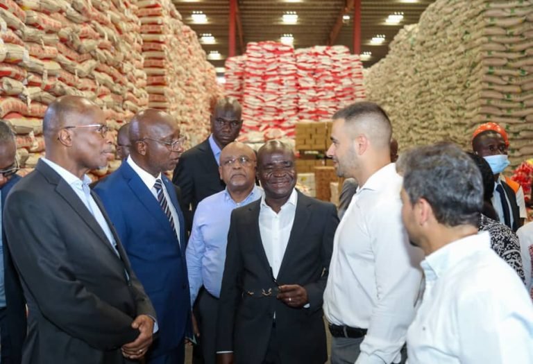 Le Ministre Kalil Konaté dans un grand entrepôt à Abidjan lors de sa visite de…