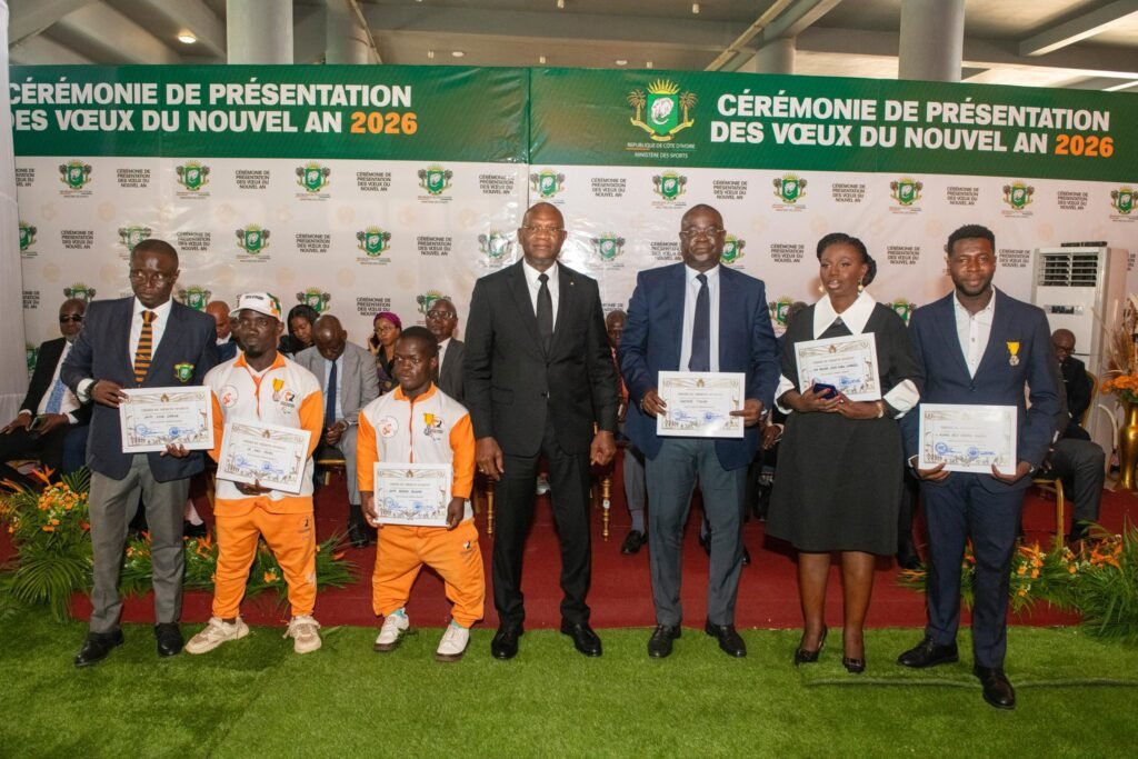 La cérémonie de présentation des vœux du Nouvel An 2026 a été marquée par un moment fort : la distinction de dix-sept personnalités dans l’Ordre du mérite sportif ivoirien. Une reconnaissance destinée à saluer leur engagement et leurs contributions remarquables au rayonnement du sport national.